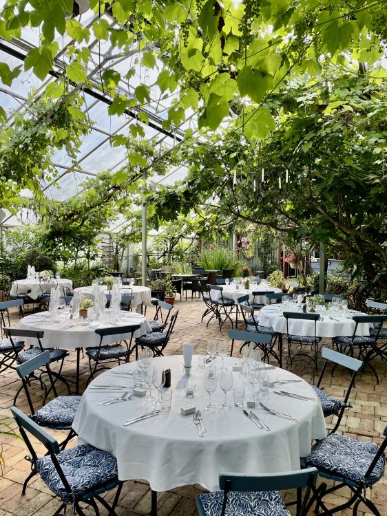 Växthusets publika del kan hyras. Det finns plats för cirka 100 personer.