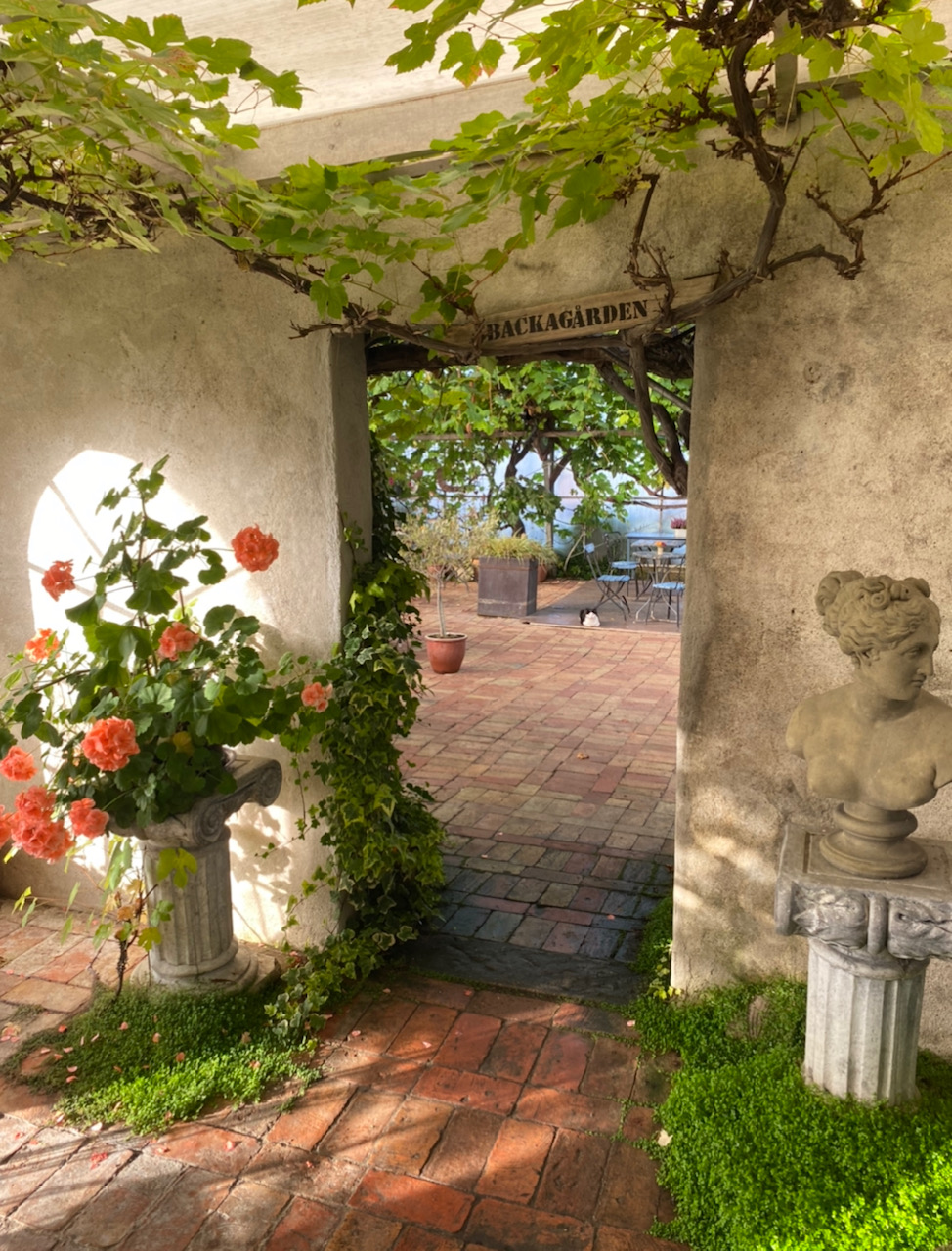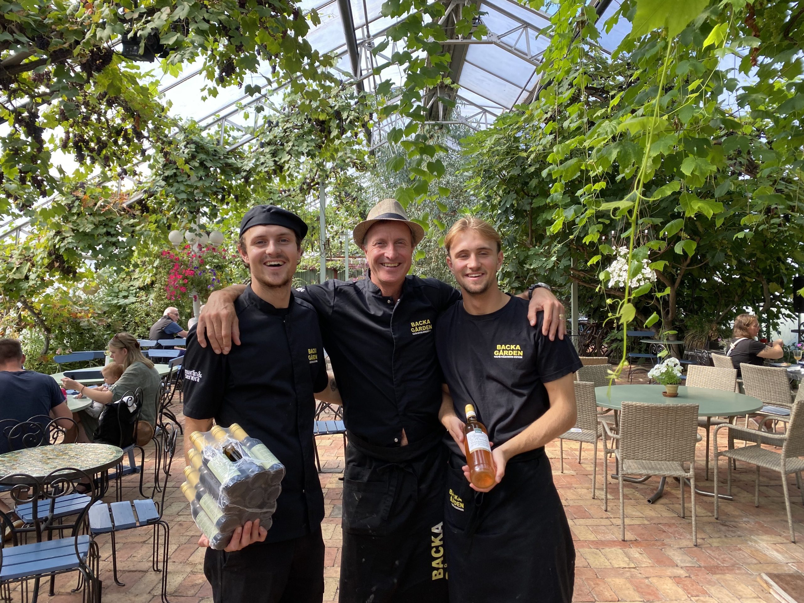 En omtyckt unik miljö, en oas där Du kan njuta av kaffet under vindruvsrankorna. Här finns även växter och utekrukor till försäljning och vi tar emot bussresor.